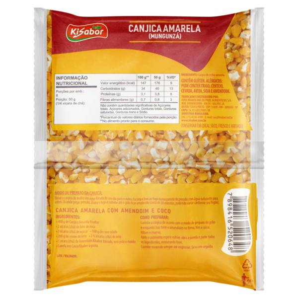 Informação Complementar: Novo peso de 500g para 400g (menos 100g ou 20%).
