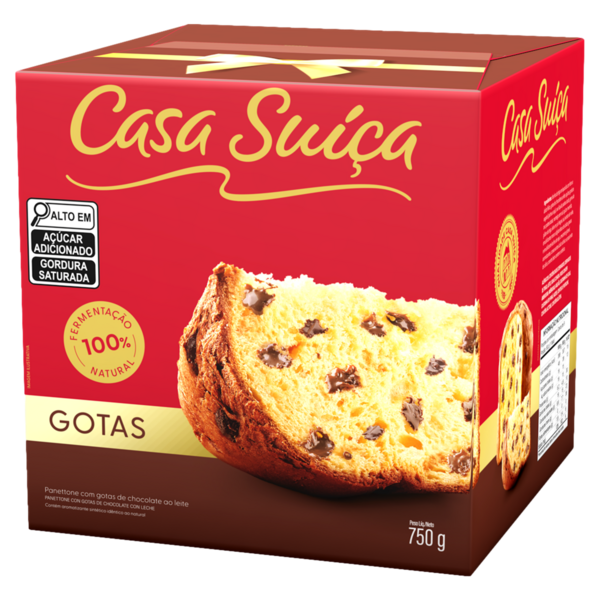 Panettone com Gotas de Chocolate ao Leite Fermentação 100% Natural Casa Suíça Caixa 750g