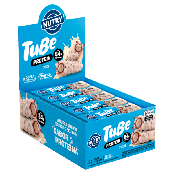 Ingredientes: Cobertura sabor chocolate branco (gordura vegetal, proteína de soro do leite concentrada, leite em pó integral, edulcorantes maltitol e sucralose, emulsificantes lecitina e poliglicerol polirricinoleato e aromatizante), farinha de trigo enriquecida com ferro e ácido fólico, gordura vegetal, proteína de soro do leite concentrada, crispies de soja, polidextrose, leite em pó integral, cacau, óleos vegetais, sal, edulcorantes maltitol e sucralose, emulsificante lecitina e aromatizantes.