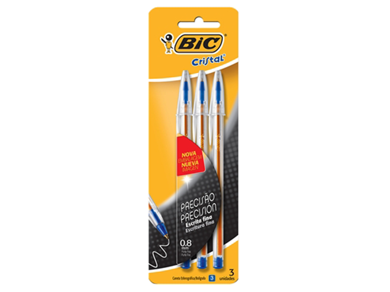 BIC CANETA ESFEROGRÁFICA CRISTAL FINA SORTIDAS 3 CORES 3 UNIDADES