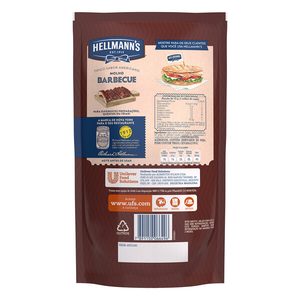 DESCRIÇÃO DE MARKETING: MOLHO BARBECUE HELLMANN'S PROFISSIONAL, COM O TÍPICO SABOR AMERICANO.