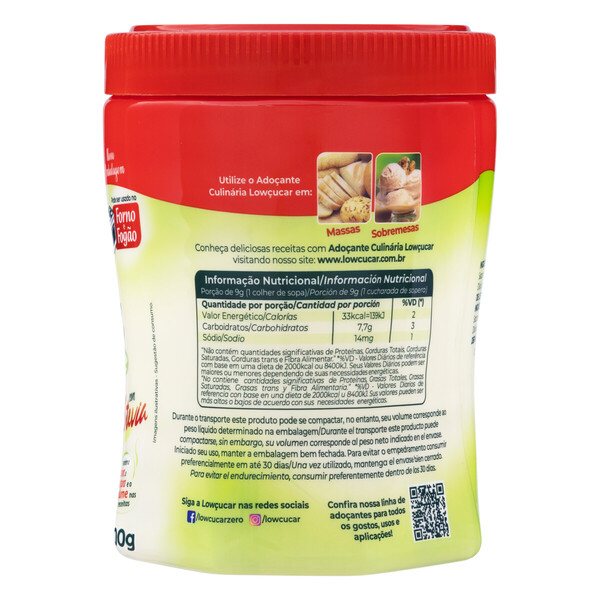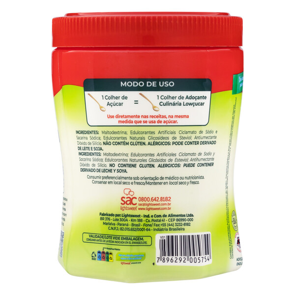 1 COLHER DE AÇÚCAR = 1 COLHER DE ADOÇANTE CULINÁRIA LOWÇUCAR.