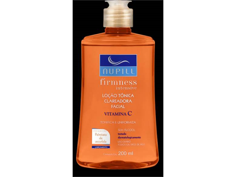 COM A FINALIDADE DE ESTIMULAR A INCLUSÃO DE UM INGREDIENTE TÃO VALIOSO NO RITUAL DIÁRIO DE BELEZA DAS BRASILEIRAS, A NUPILL INOVOU MAIS UMA VEZ E TROUXE PARA O MERCADO A LOÇÃO TÔNICA CLAREADORA NUPILL VITAMINA C. O PRODUTO CONTÉM INGREDIENTES SUAVES QUE TONIFICAM, REVITALIZAM E UNIFORMIZAM O TOM DA PELE, ALÉM DE REEQUILIBRAR O PH.