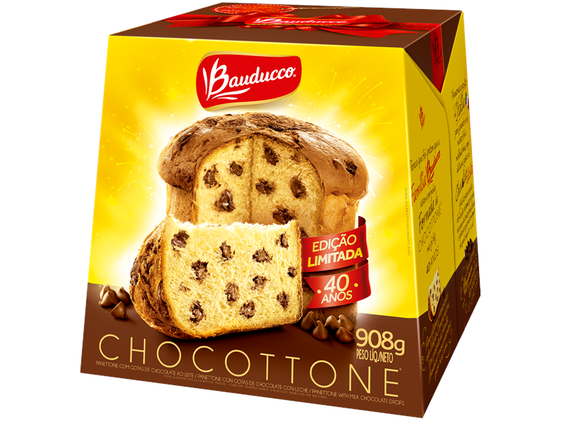 DESCRIÇÃOO ORIGINAL. A COMBINAÇÃO PERFEITA DA MASSA DO TRADICIONAL PANETTONE BAUDUCCO COM DELICIOSAS GOTAS DE CHOCOLATE AO LEITE!INGREDIENTESINGREDIENTES: FARINHA DE TRIGO ENRIQUECIDA COM FERRO E ÁCIDO FÓLICO, GOTAS DE CHOCOLATE AO LEITE, GORDURA VEGETAL, AÇÚCAR, OVO INTEGRAL, GEMA DE OVO, GLUCOSE, MANTEIGA, SAL, EXTRATO DE MALTE, MANTEIGA DE CACAU, EMULSIFICANTE: MONO E DIGLICERÍDEOS DE ÁCIDOS GRAXOS, CONSERVADORES: PROPIONATO DE CÁLCIO E ÁCIDO SÓRBICO E AROMATIZANTES. CONTÉM GLÚTEN. CONTÉM LACTOSE. ALÉRGICOS: CONTÉM OVOS E DERIVADOS, LEITE E DERIVADOS E DERIVADOS DE TRIGO, CEVADA E DE SOJA. PODE CONTER: CENTEIO, AVEIA, AMENDOIM, AMÊNDOA, AVELÃS, CASTANHA-DE-CAJU, CASTANHA-DO-PARÁ, PISTACHES, GERGELIM E NOZES.