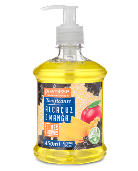 O Sabonete Premisse Alcaçuz e Manga apresenta uma formulação cuidadosamente balanceada, destinada a limpeza das mãos, do rosto e do corpo, proporcionando maciez e sedosidade. Esse produto não agride a pele, pois possui pH neutro.