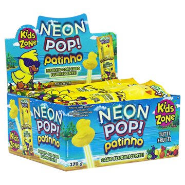 PIRULITO COM CABO FLUORESCENTE TUTTI FRUTTI PATINHO KIDS ZONE NEON POP DP COM 30 PACOTES DE 9G
