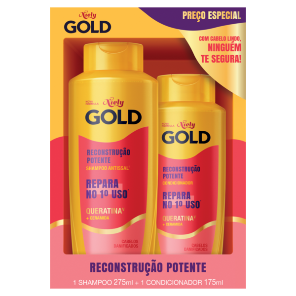 Kit Shampoo Antissal 275ml + Condicionador 175ml Niely Gold Reconstrução Potente